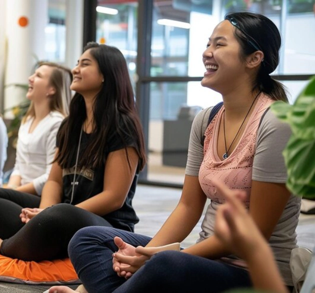 Laughter yoga and mindfulness exercises help manage study pressure effectively.